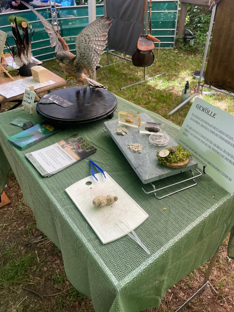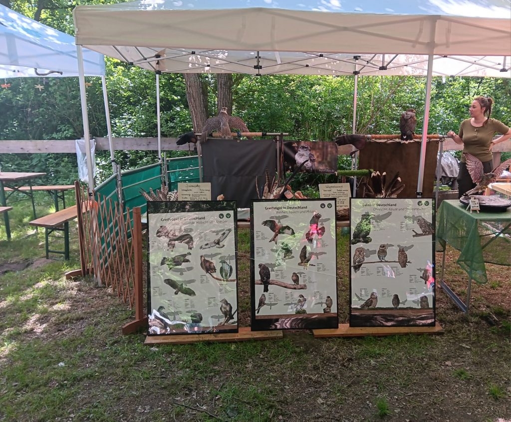 Ein besonderes Highlight war das Familienwochenende mit dem Mitmachmarkt am Sonntag, den 10. Mai. Diesen Tag konnten wir mit einem eigenen Stand begleiten – gemeinsam mit meiner geschätzten Falknerkollegin Susanne von der Falknerei am Siebengebirge. Eine schöne Gelegenheit, unsere Rhein-Ruhr-Connection auch hier gemeinsam zu zeigen.